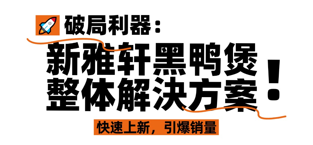 針對餐飲門店經(jīng)營的核心難點(diǎn),新雅軒推出【黑鴨煲風(fēng)味醬+黑鴨煲(一體包)】完整產(chǎn)品矩陣,四大優(yōu)勢精準(zhǔn)破局,引爆銷量!